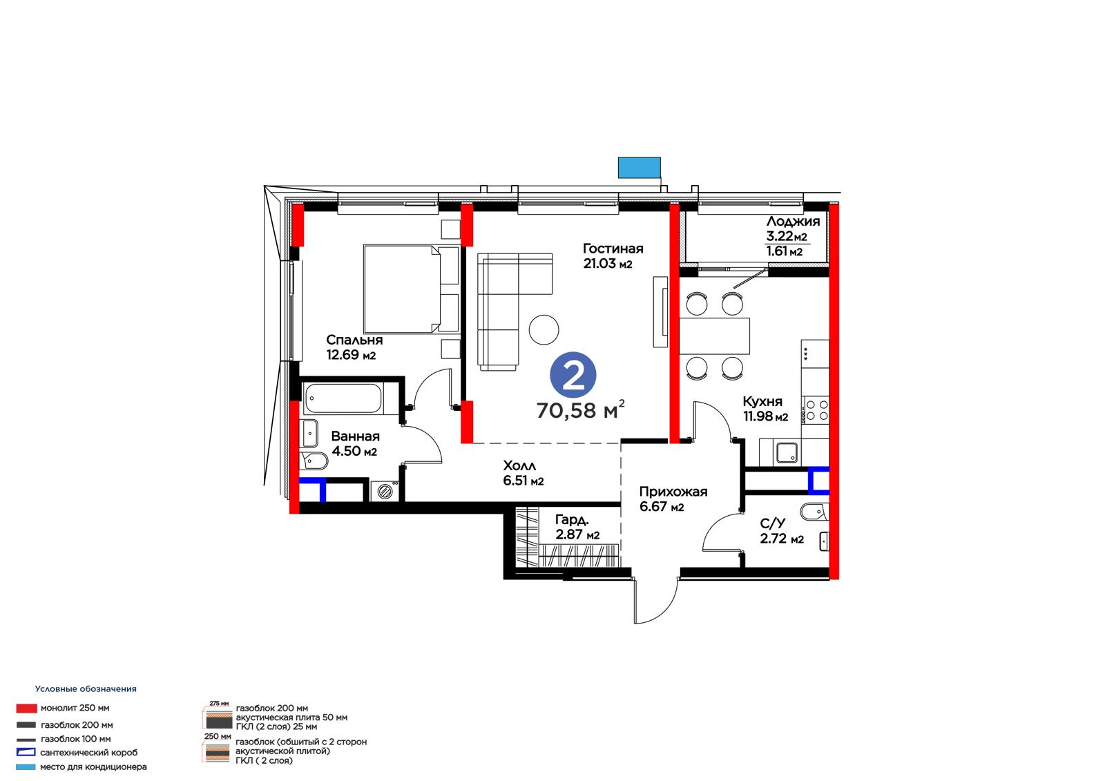 Продажа 2-комнатной квартиры в ЖК MOD Ultra, 70.58 м², г. Астана, ул. Хусейн бен Талал (31-я)