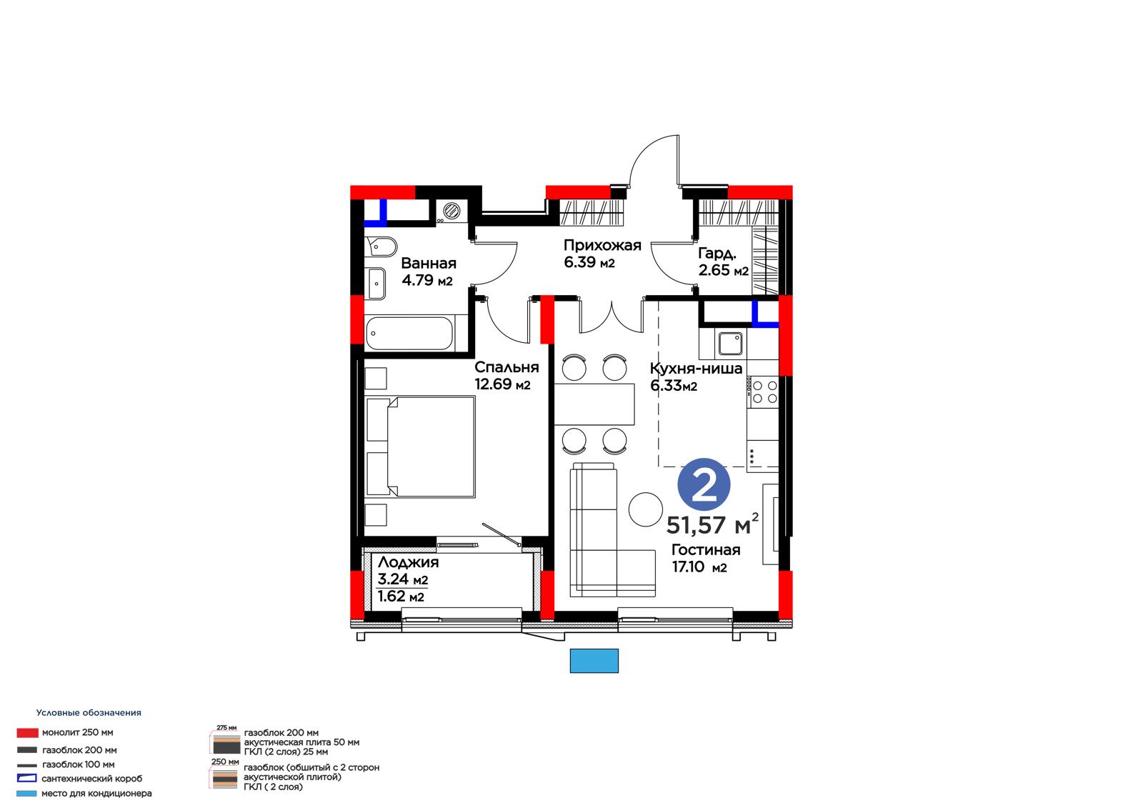 Продажа 2-комнатной квартиры в ЖК MOD Ultra, 51.57 м², г. Астана, ул. Хусейн бен Талал (31-я)