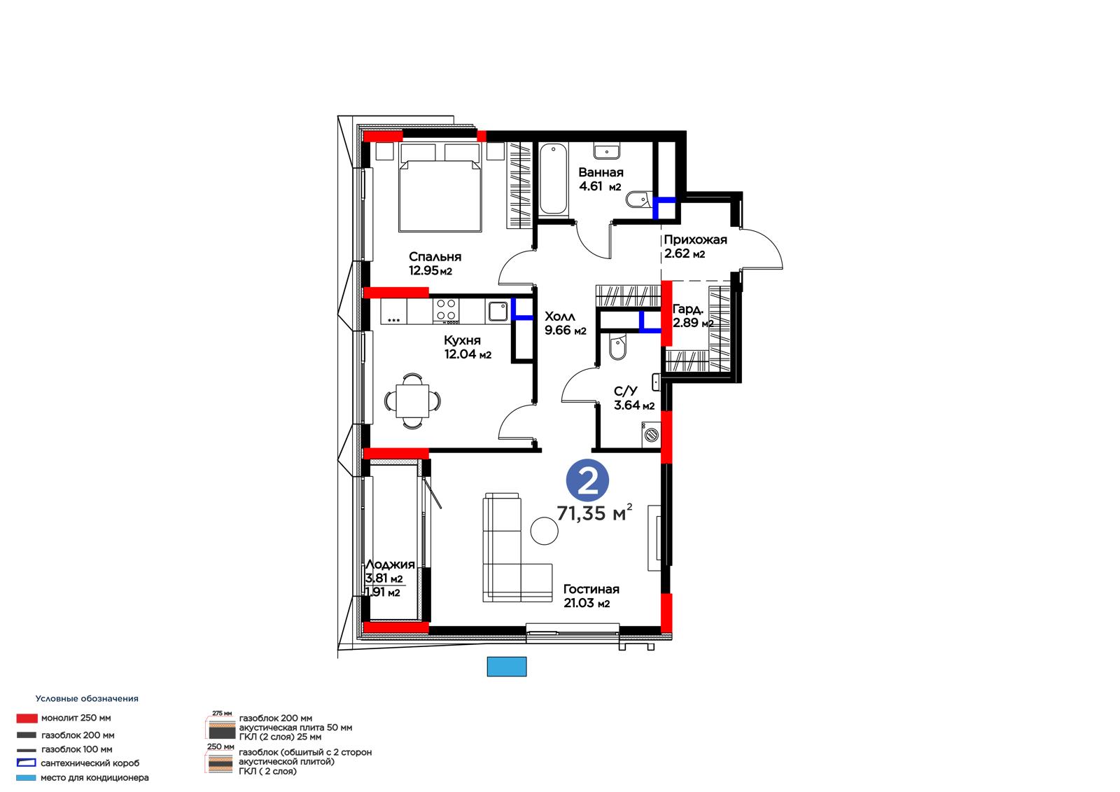 Площадь 71.35 м²