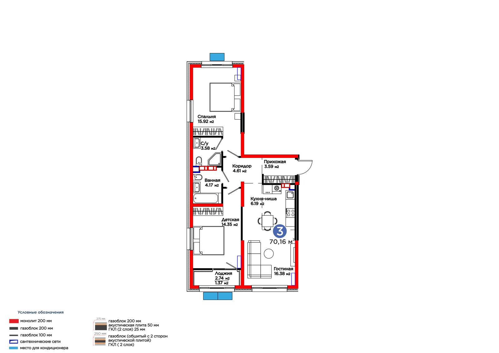Площадь 70.16 м²