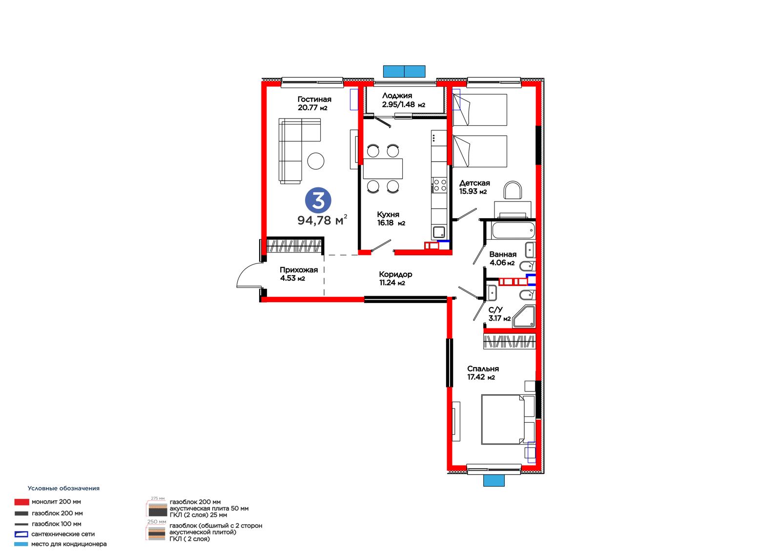 Площадь 94.75 м²