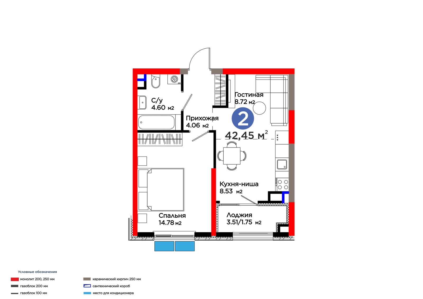 Площадь 42.45 м²
