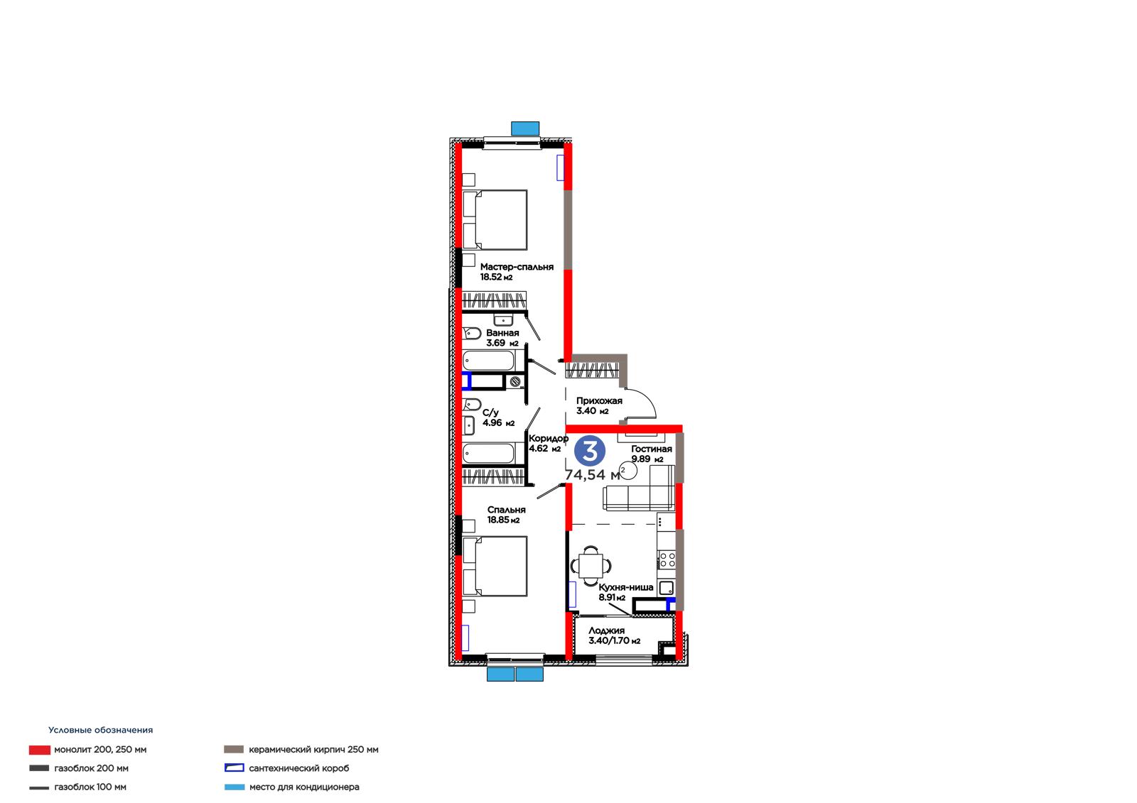 Продажа 3-комнатной квартиры в ЖК BI Sad'O, 74.54 м², г. Ташкент, Яшнабадский район 323