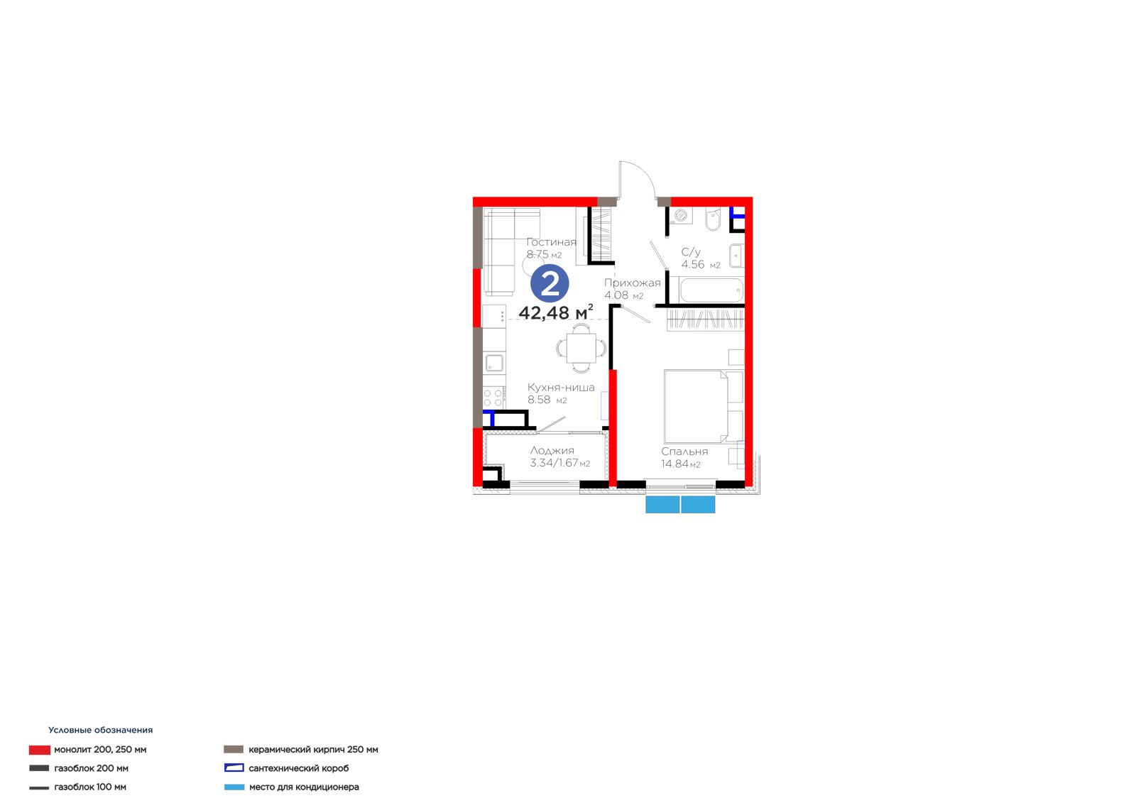 Продажа 2-комнатной квартиры в ЖК BI Sad'O, 42.48 м², г. Ташкент, Яшнабадский район 323