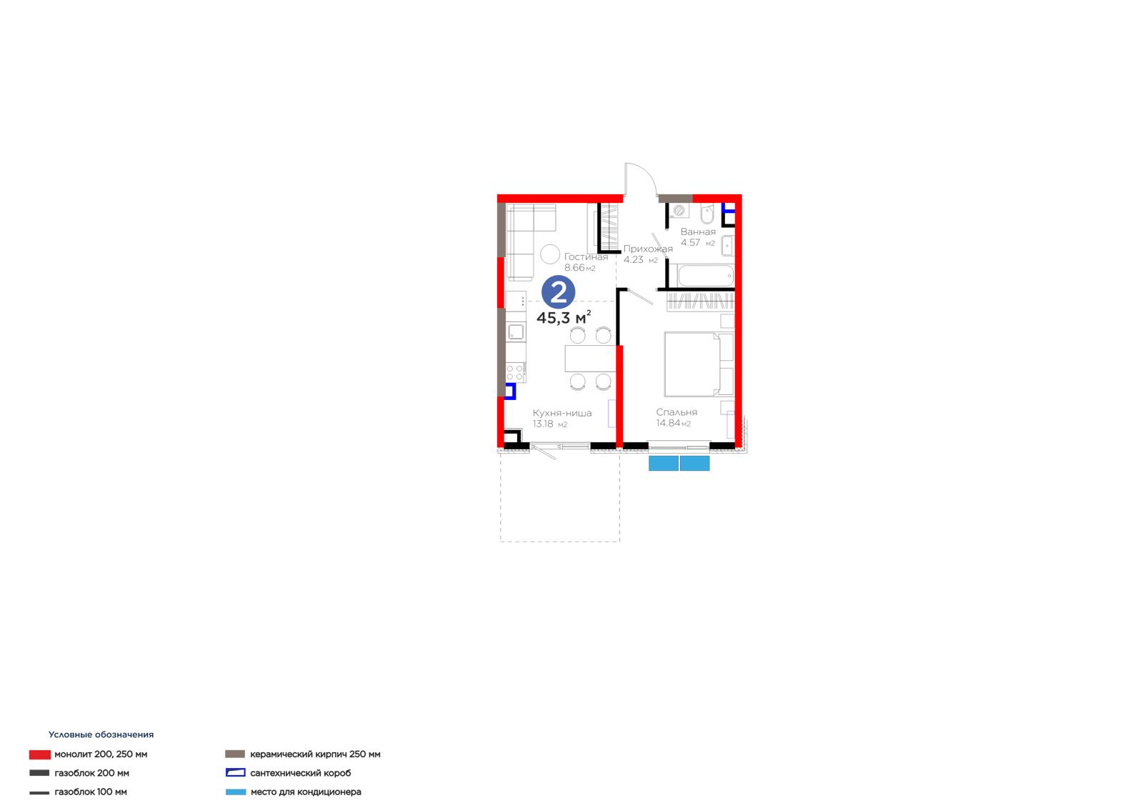 Продажа 2-комнатной квартиры в ЖК Sado Business, 45.3 м², г. Ташкент