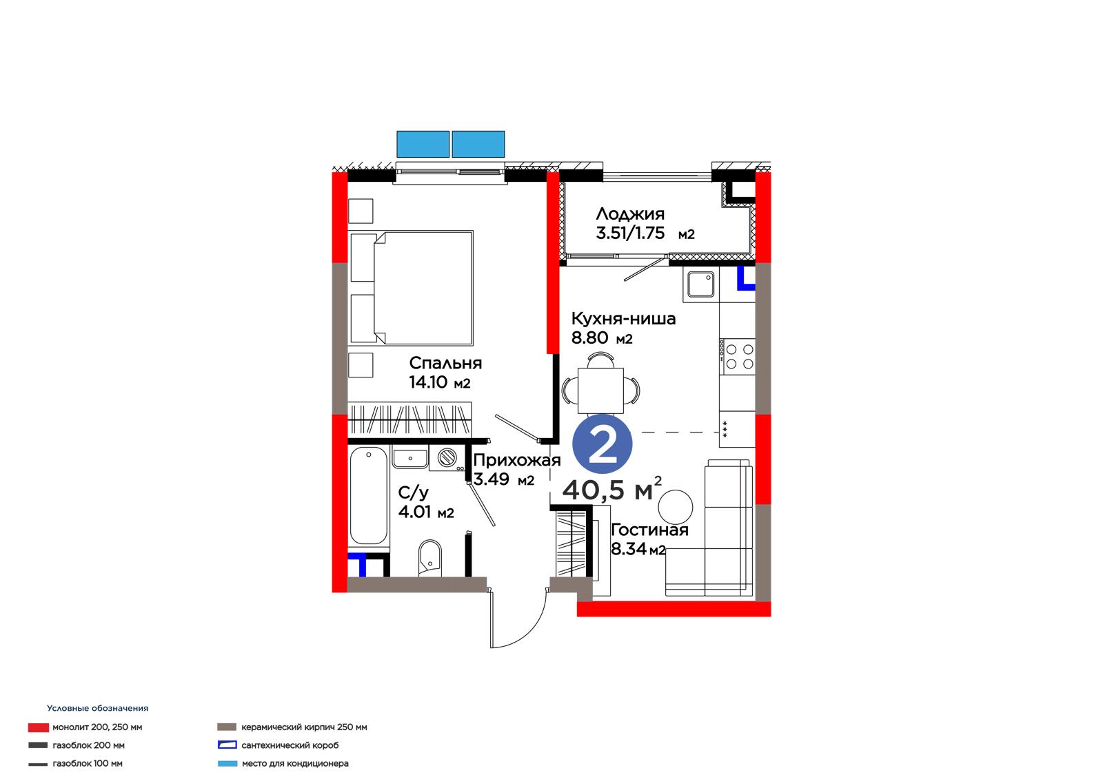 Площадь 40.5 м²