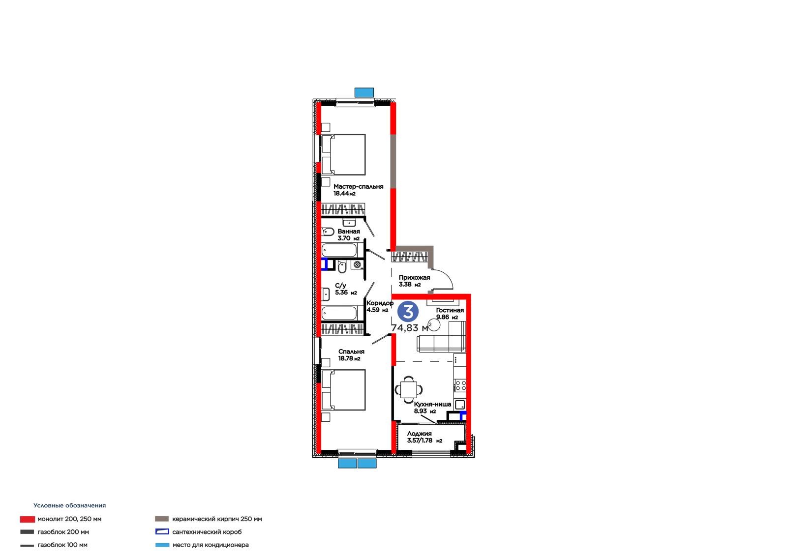 Площадь 74.83 м²