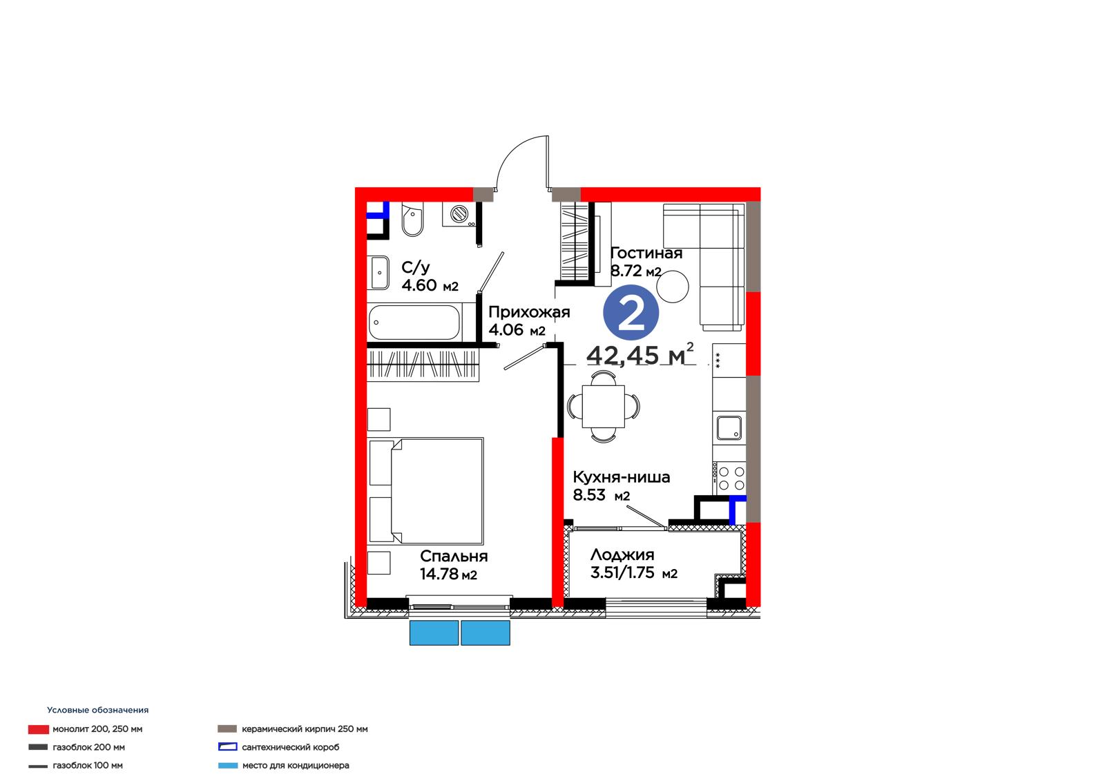 Площадь 42.45 м²