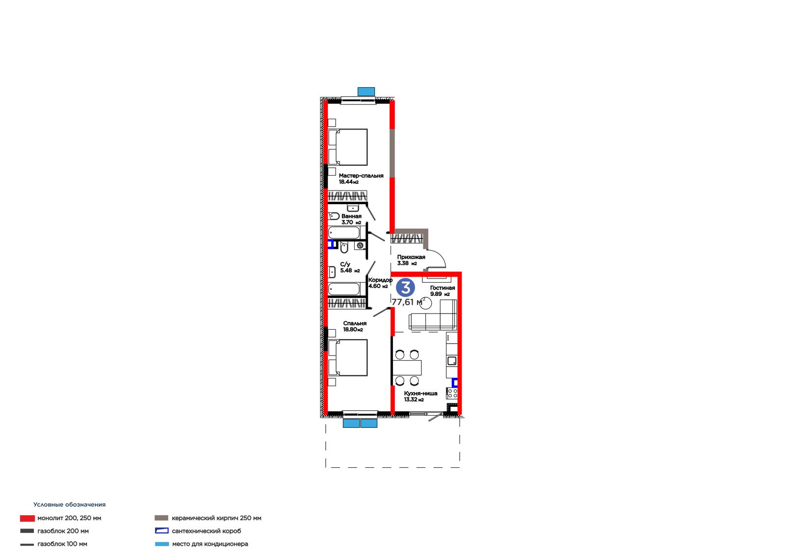 Продажа 3-комнатной квартиры в ЖК Sado Business, 77.61 м², г. Ташкент