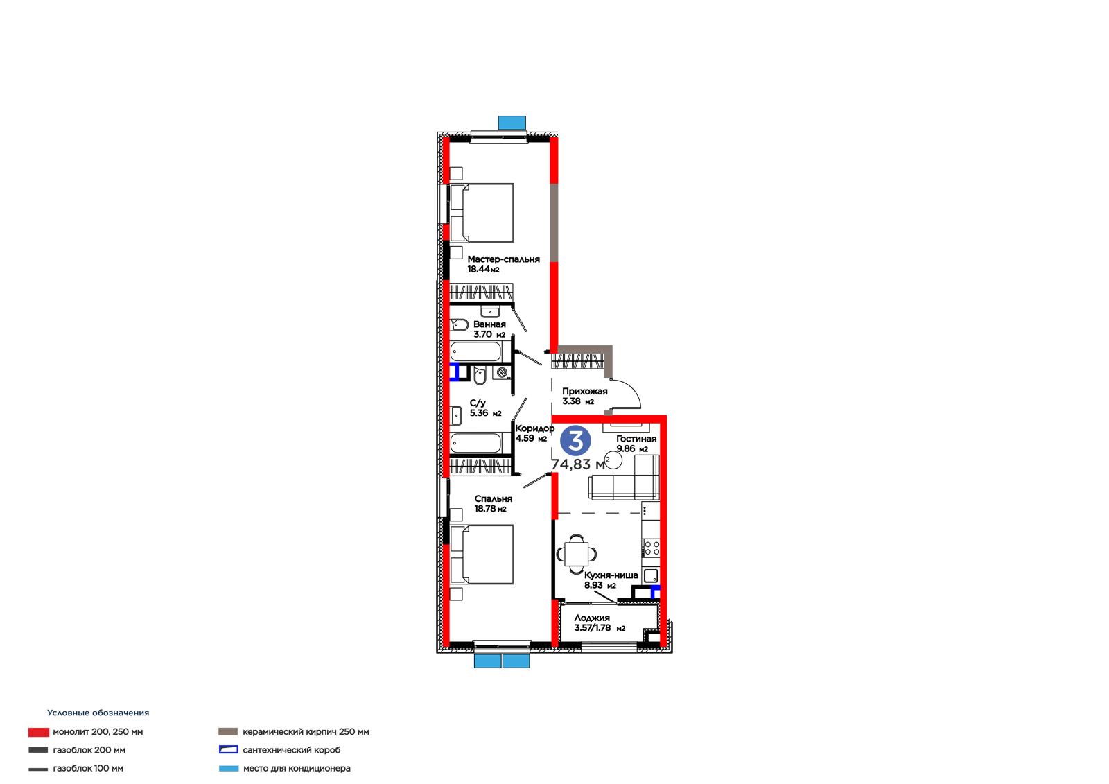 Продажа 3-комнатной квартиры в ЖК Sado Business, 74.83 м², г. Ташкент