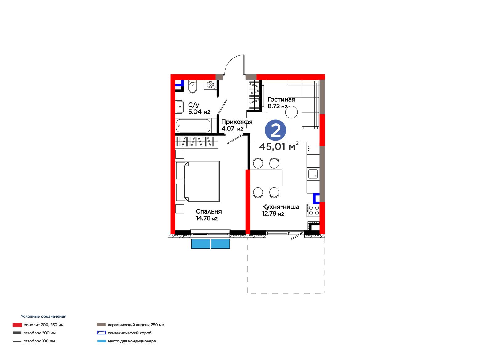 Площадь 45.01 м²