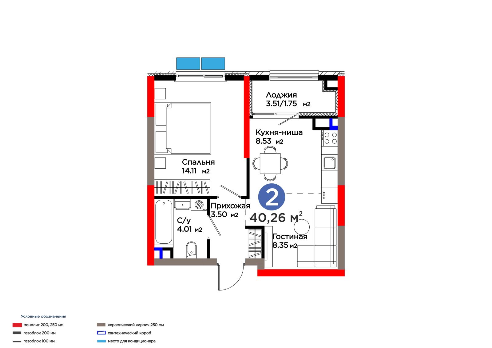 Площадь 40.26 м²