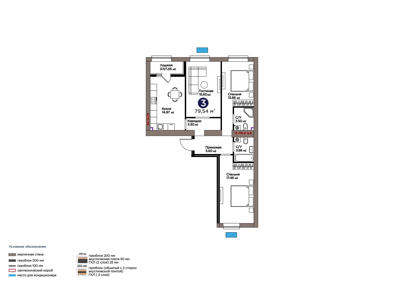 Продажа 3-комнатной квартиры в ЖК OİU, 79.54 м², г. Астана