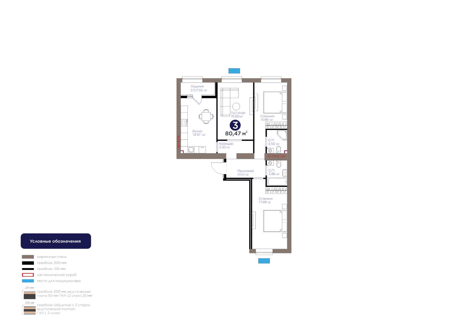 Продажа 3-комнатной квартиры в ЖК OİU, 79.54 м², г. Астана