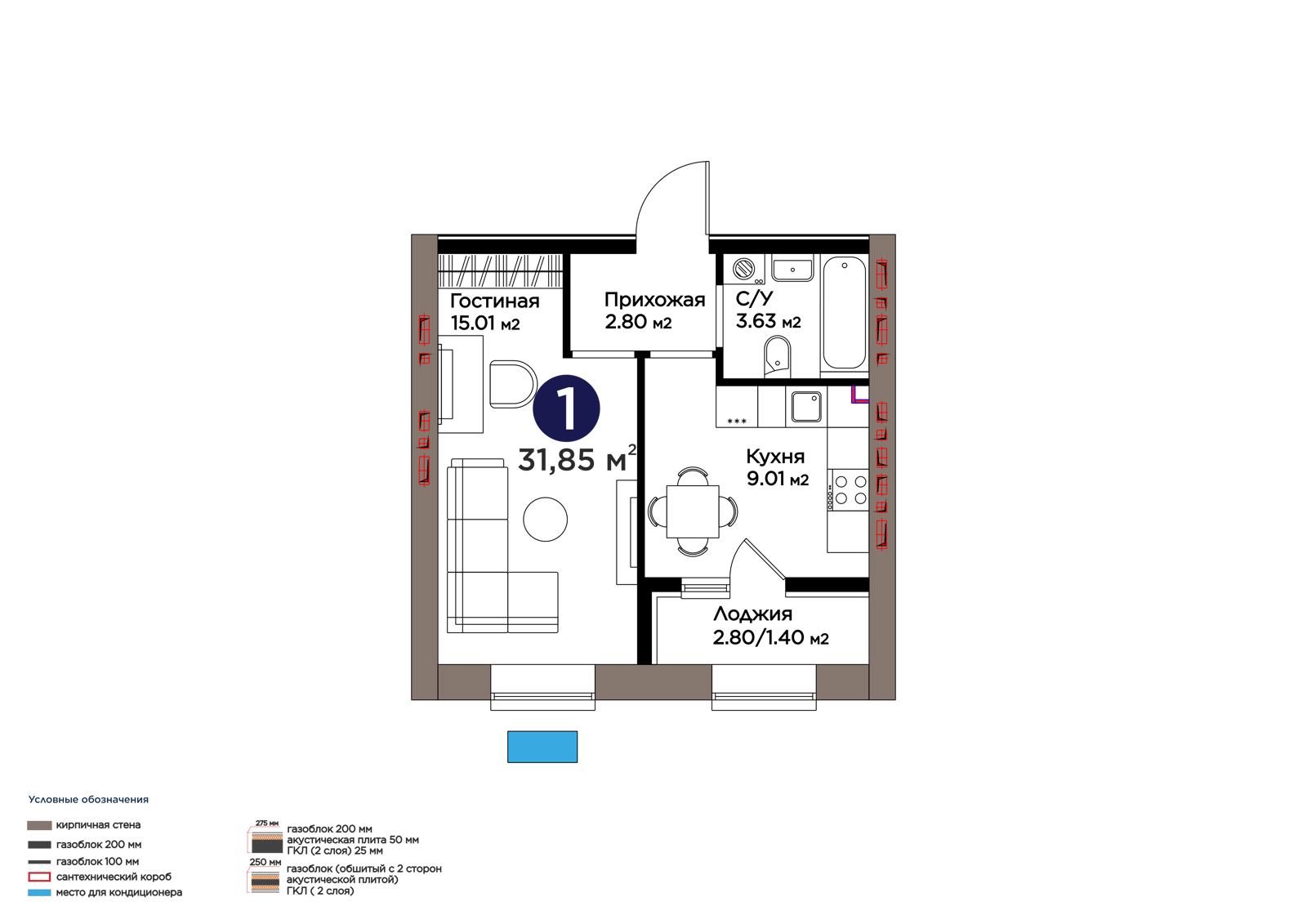 Площадь 31.85 м²