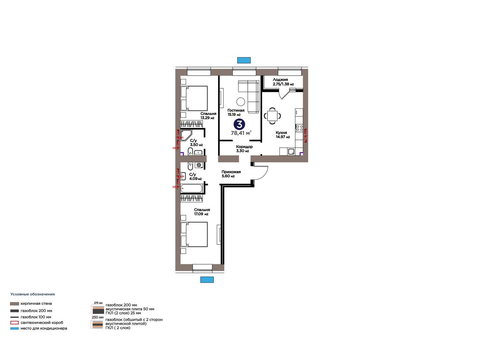 Продажа 3-комнатной квартиры в ЖК OİU, 78.41 м², г. Астана