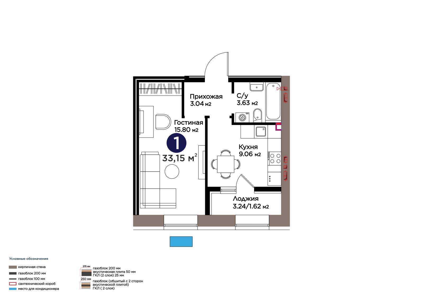 Площадь 33.15 м²