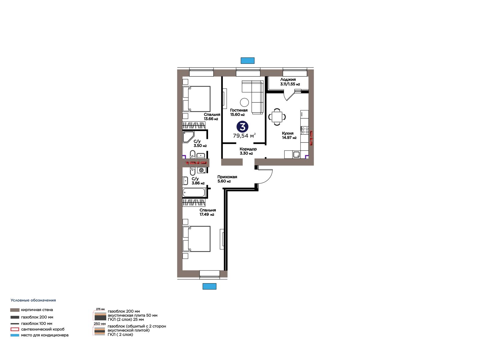 Продажа 3-комнатной квартиры в ЖК OİU, 79.54 м², г. Астана