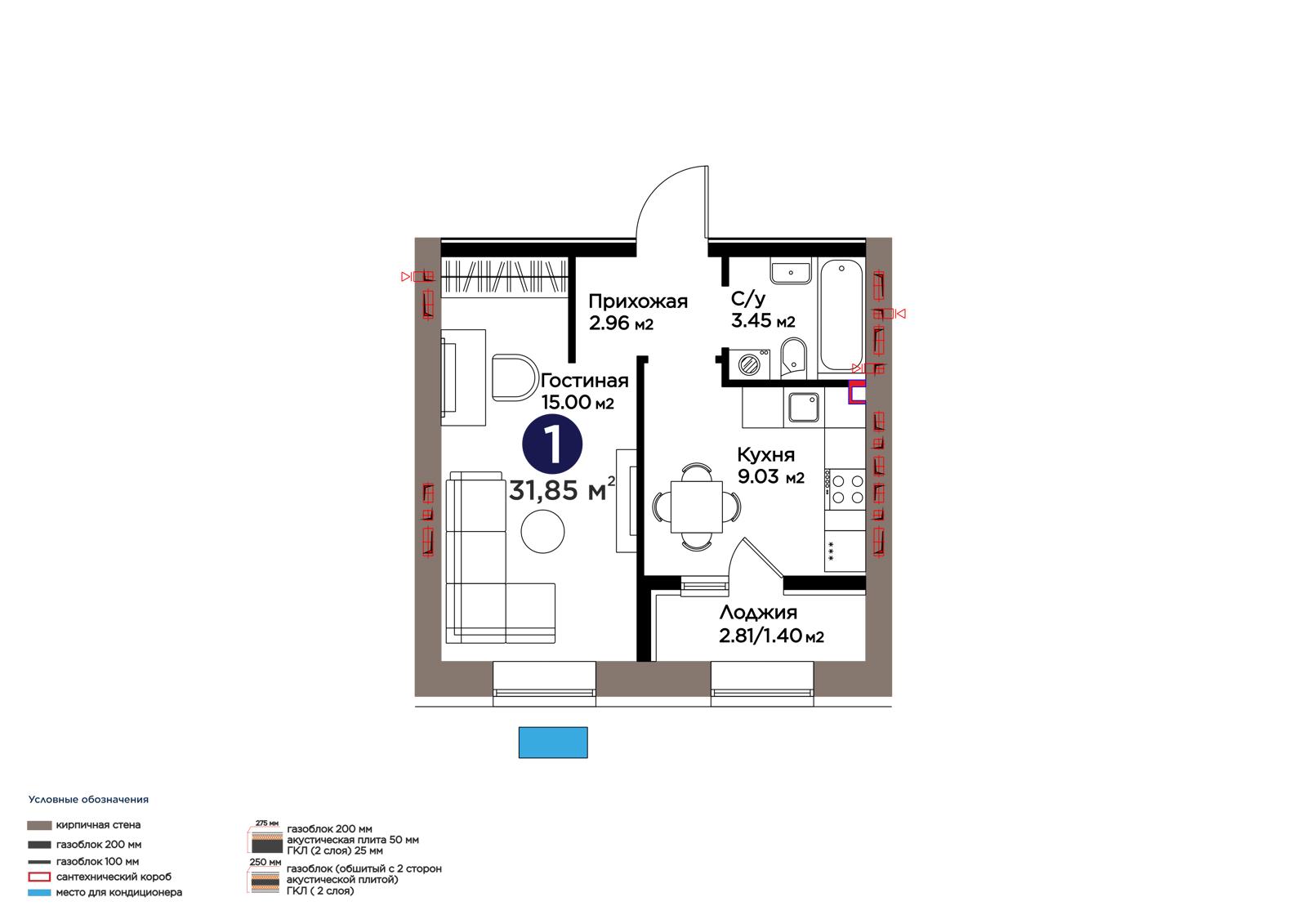 Продажа 1-комнатной квартиры в ЖК OİU, 31.85 м², г. Астана