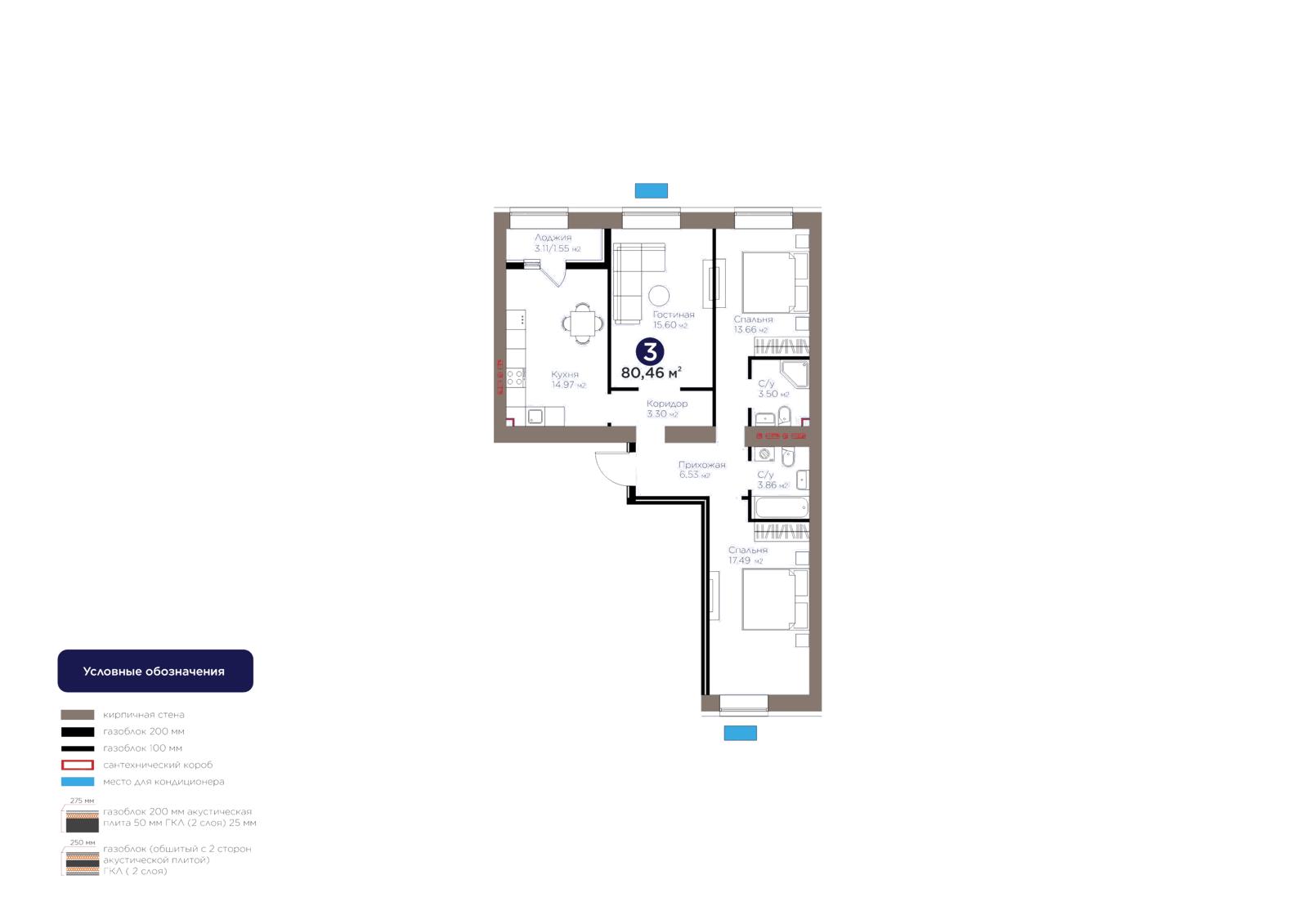 Площадь 79.54 м²