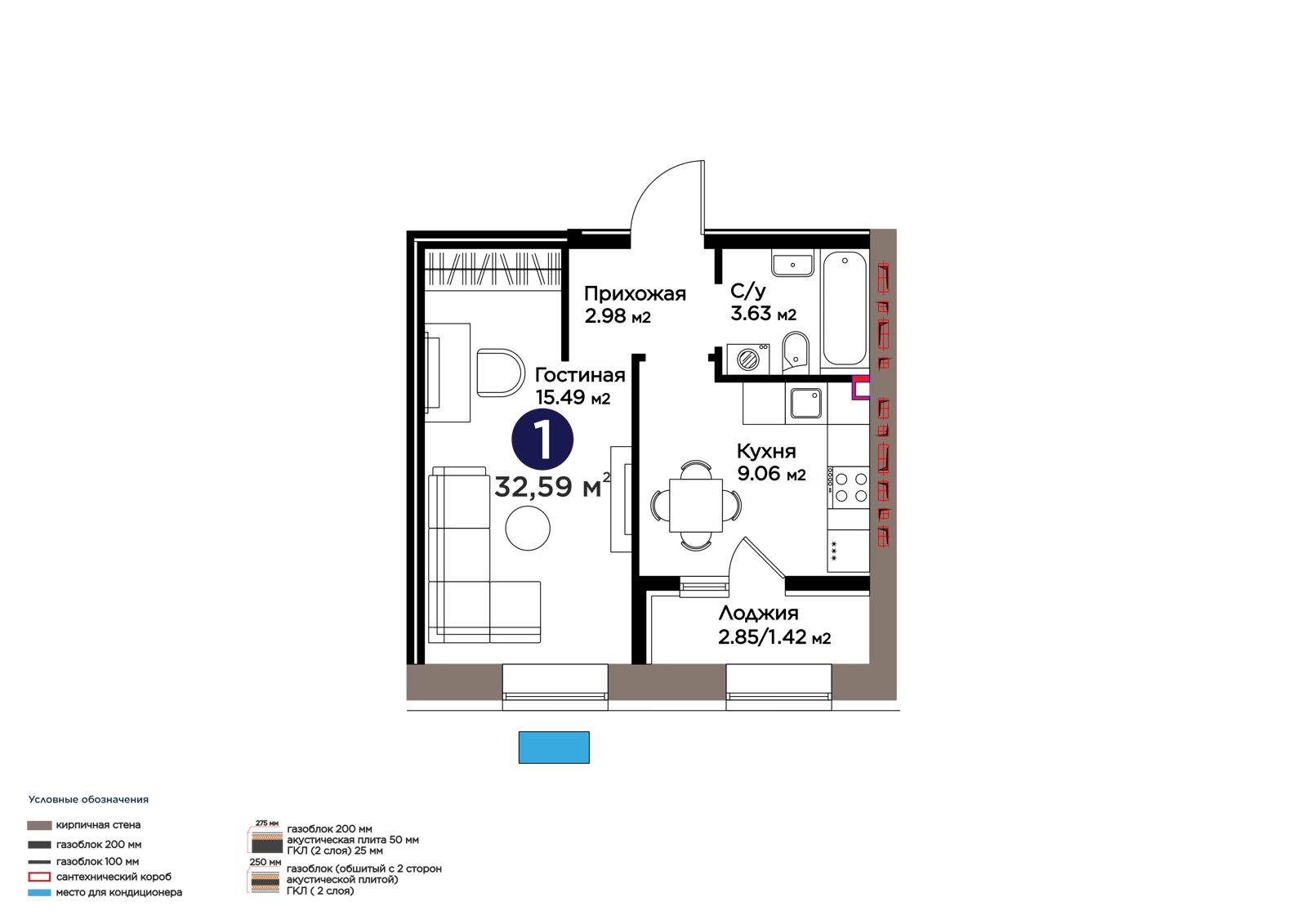 Площадь 32.59 м²