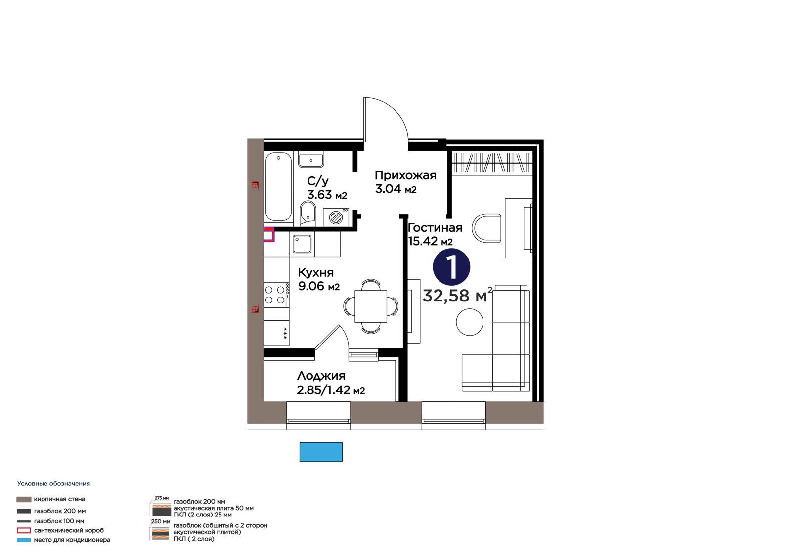 Площадь 32.58 м²