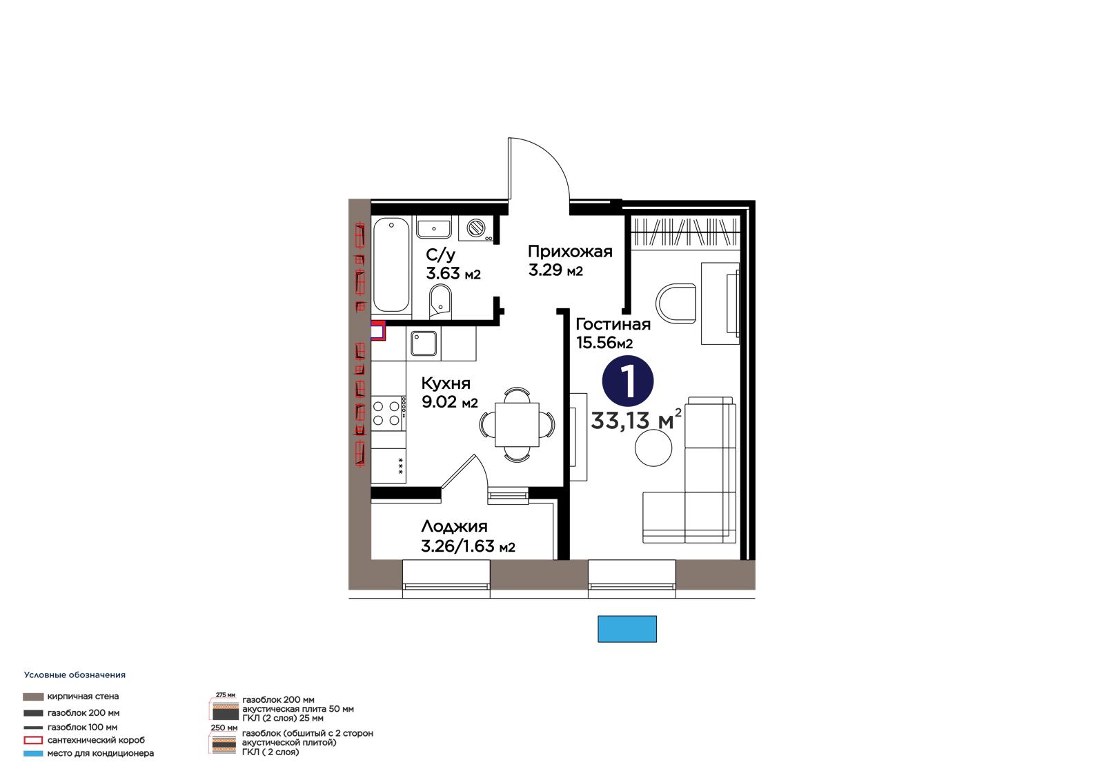 Площадь 33.13 м²