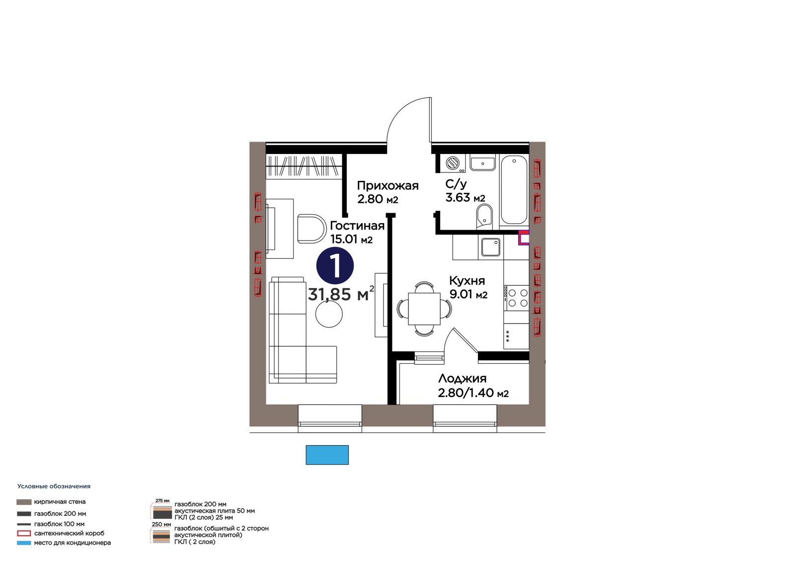 Площадь 31.85 м²