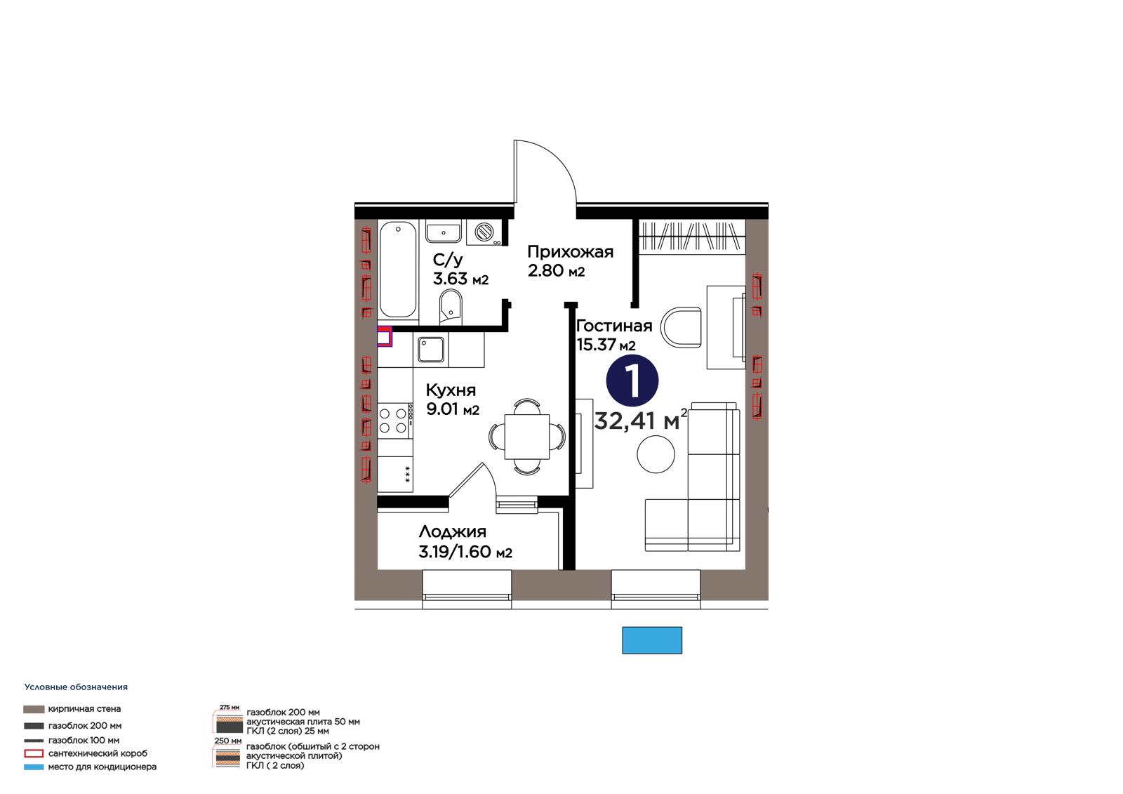 Площадь 32.41 м²
