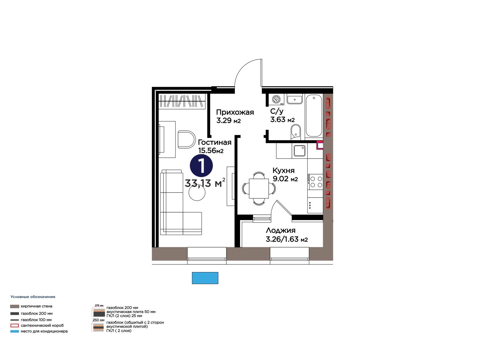 Площадь 33.13 м²
