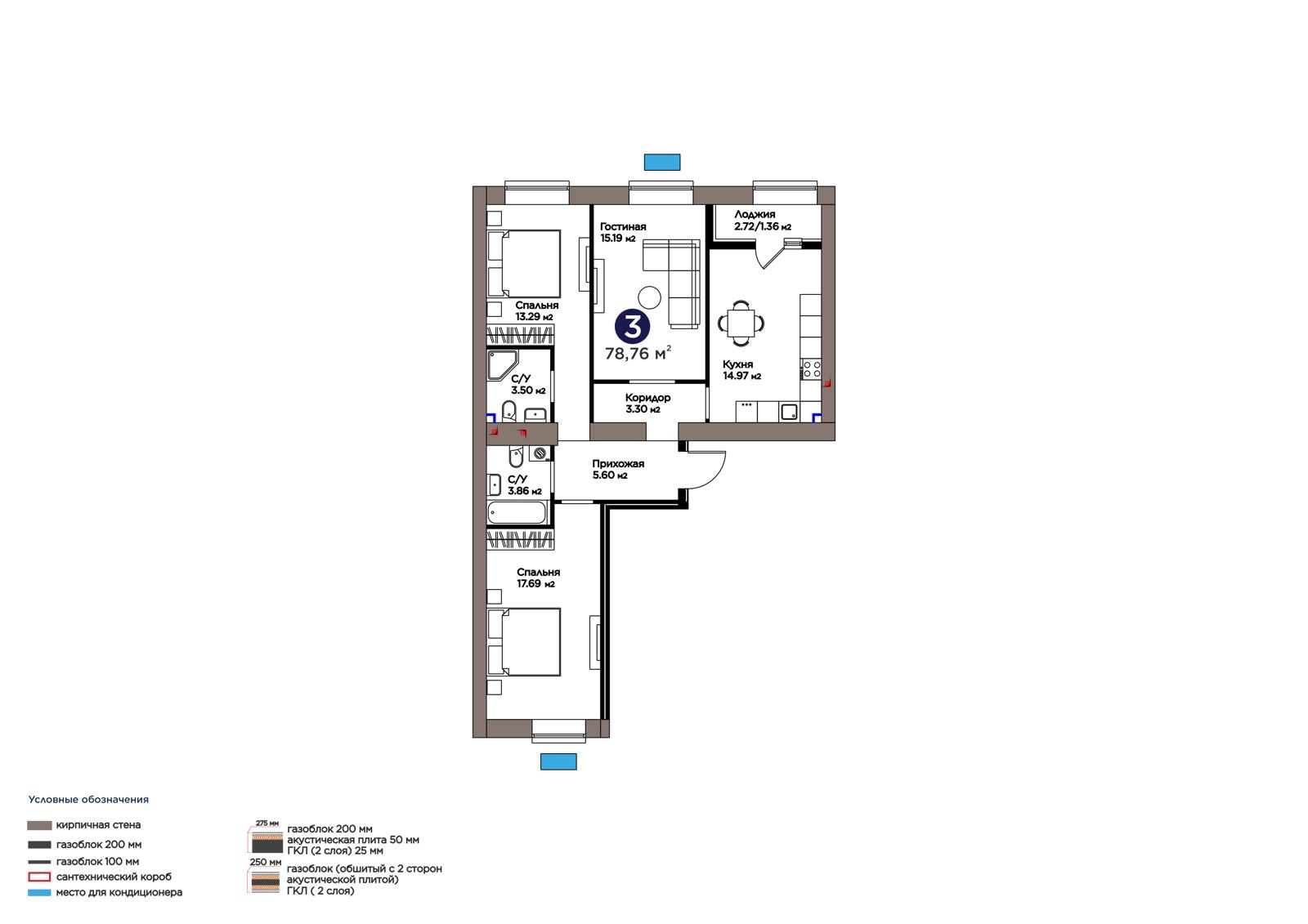 Продажа 3-комнатной квартиры в ЖК OİU, 78.76 м², г. Астана