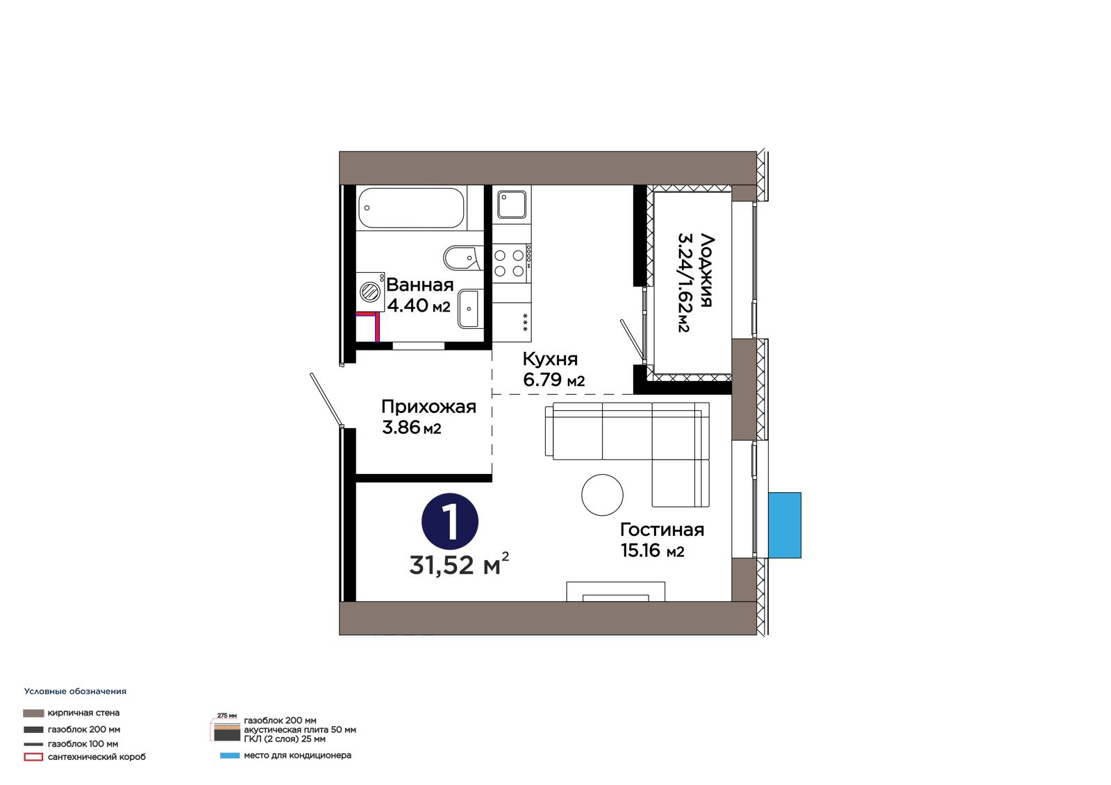 Продажа 1-комнатной квартиры в ЖК Lavita, 31.52 м², г. Астана