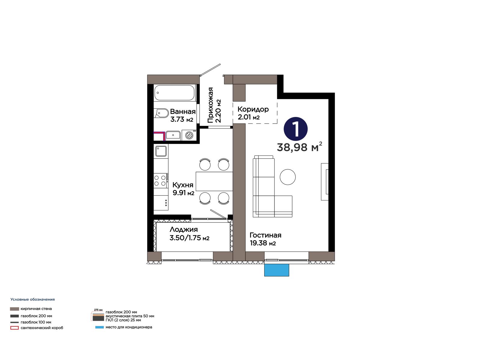 Площадь 38.98 м²