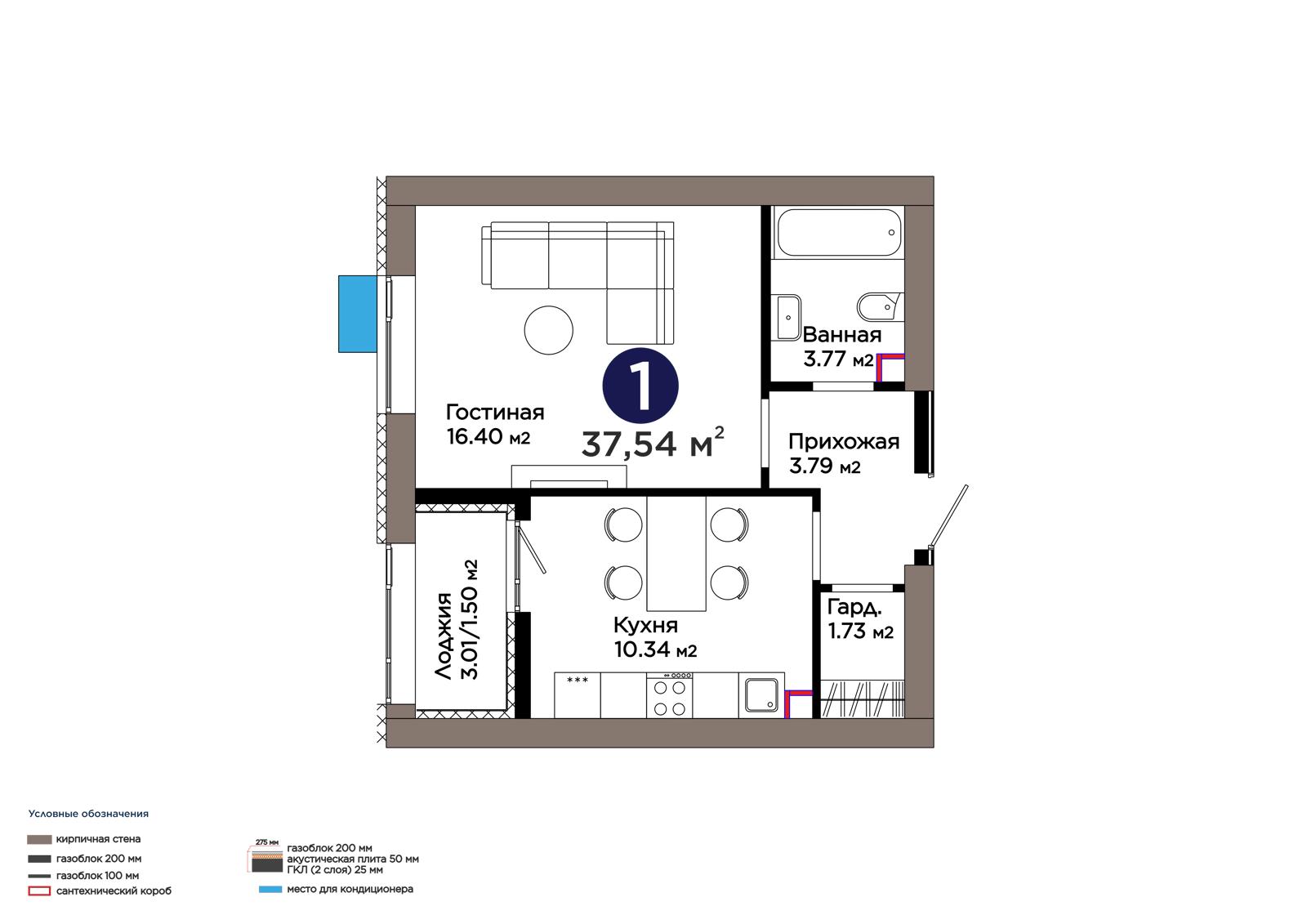 Площадь 37.54 м²