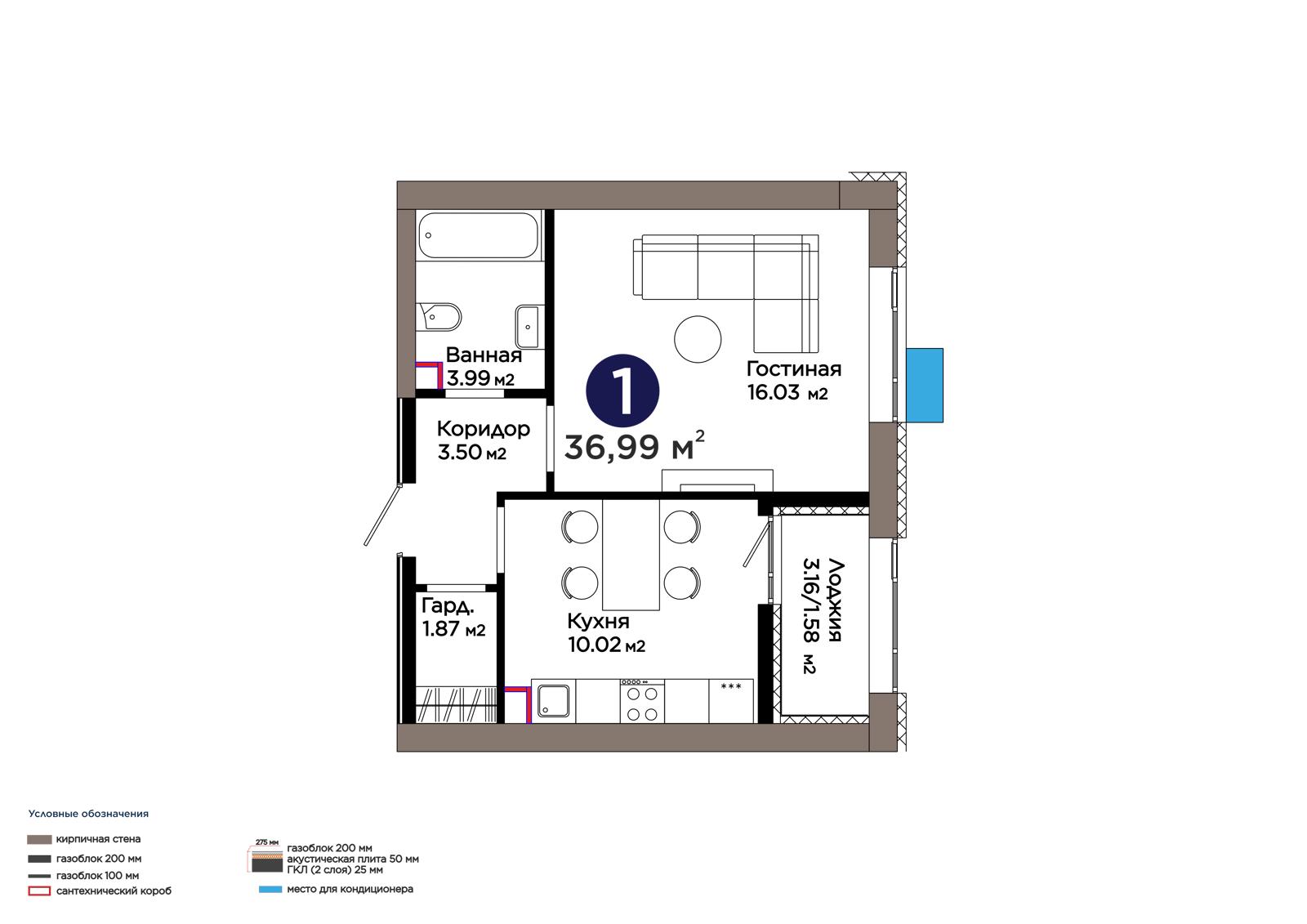 Продажа 1-комнатной квартиры в ЖК Lavita, 36.99 м², г. Астана