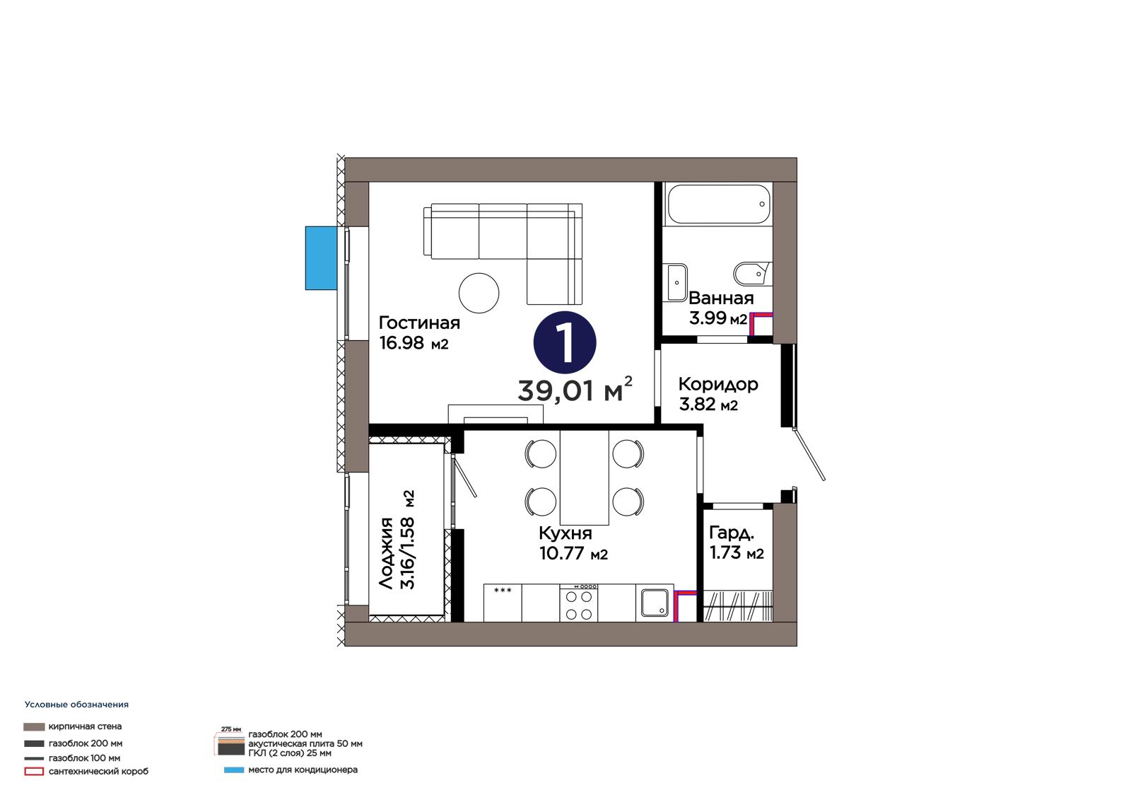 Продажа 1-комнатной квартиры в ЖК Lavita, 39.01 м², г. Астана