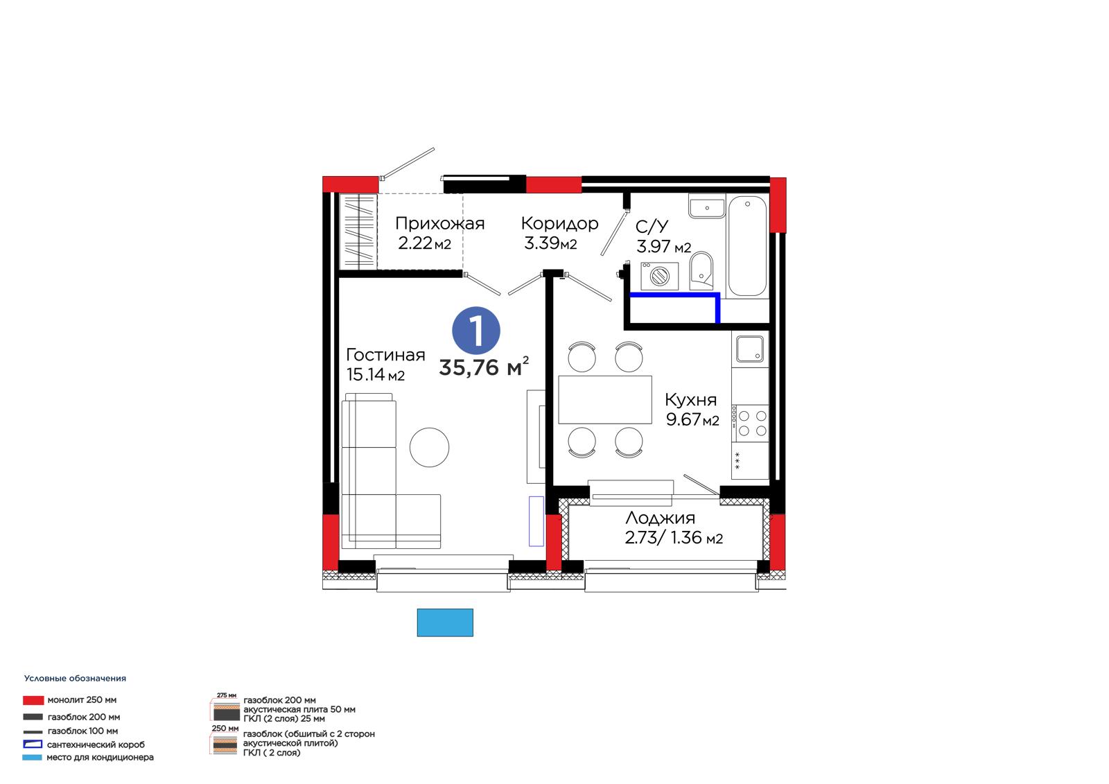 Продажа 1-комнатной квартиры в ЖК OİU, 35.76 м², г. Астана
