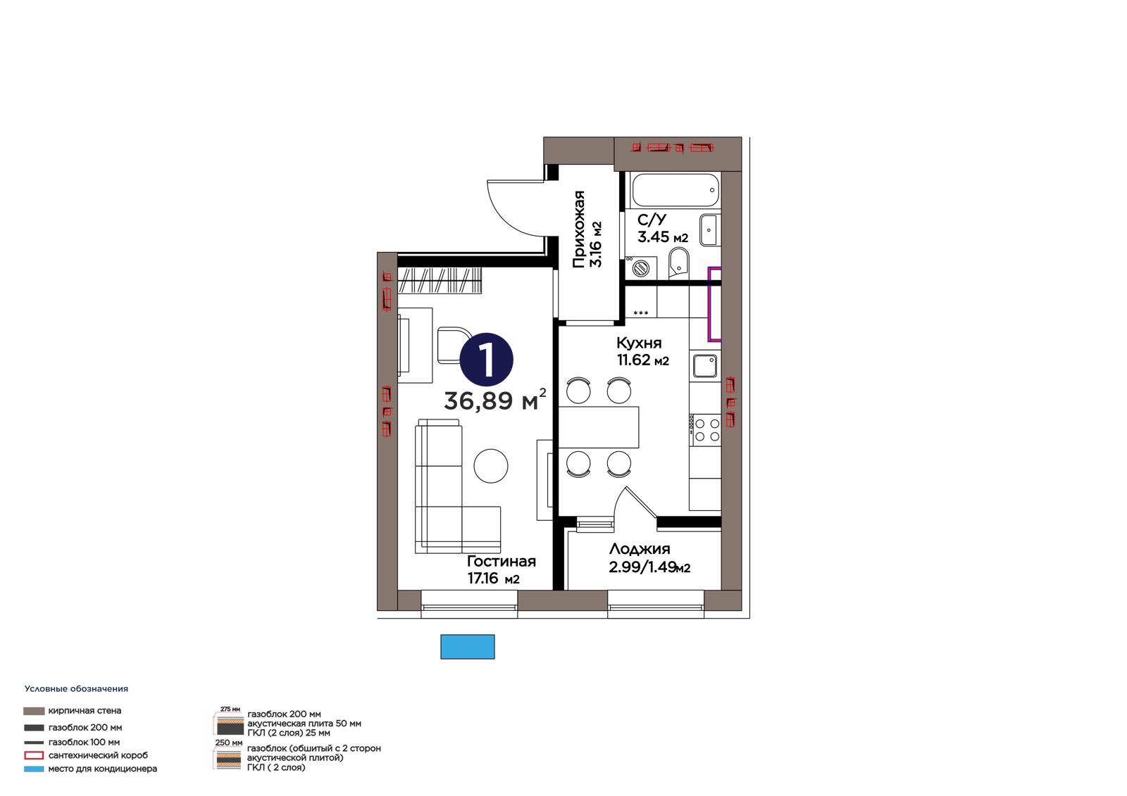 Продажа 1-комнатной квартиры в ЖК OİU, 36.89 м², г. Астана