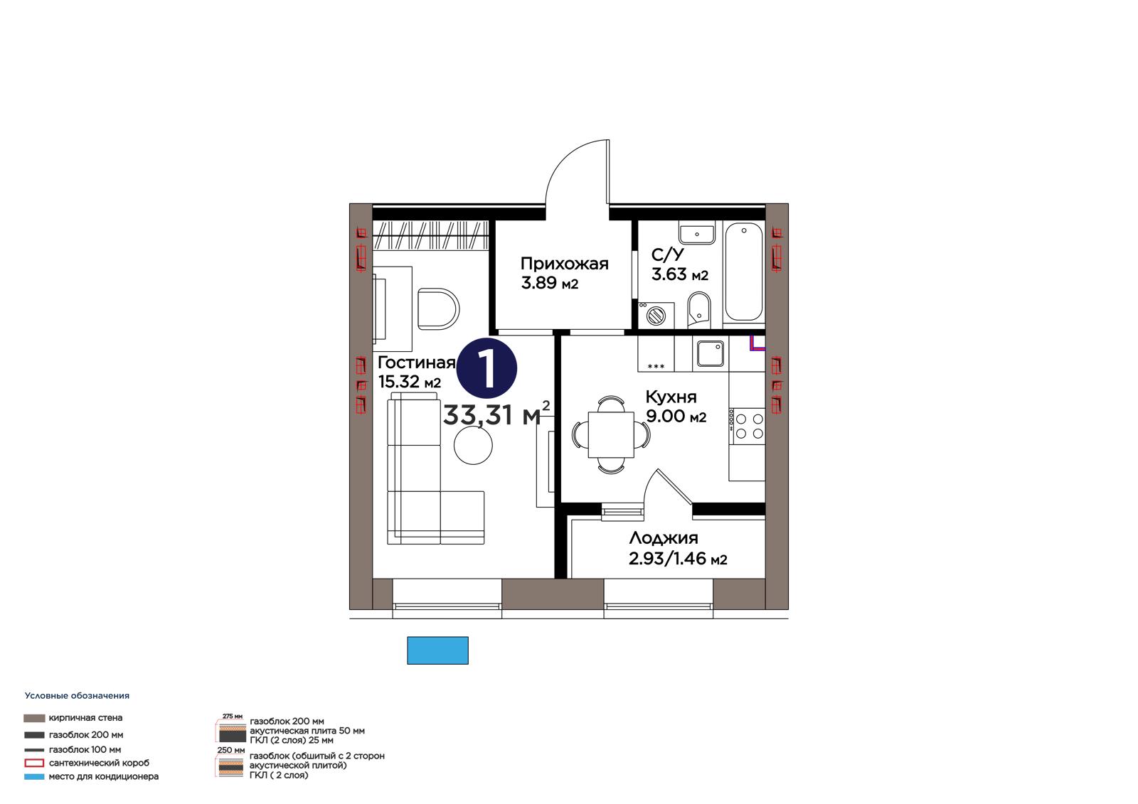 Продажа 1-комнатной квартиры в ЖК OİU, 33.31 м², г. Астана