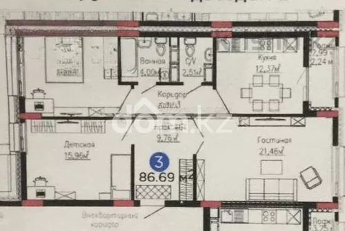 Пластиковые окна неугловая улучшенная встроенная кухня тихий двор кондиционер Рядом есть 60 школа спортивный комплекс Астан...