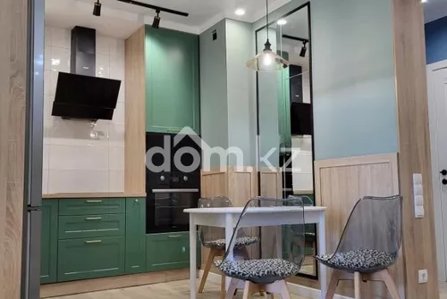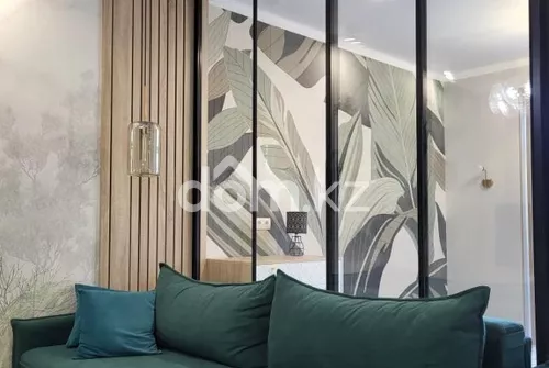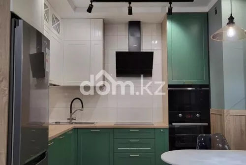 Кухнястудия Продается новая квартира с 2 спальнями и витражными окнами Алмалинский район у озера Сайран новый ЖК 2 этаж окн...
