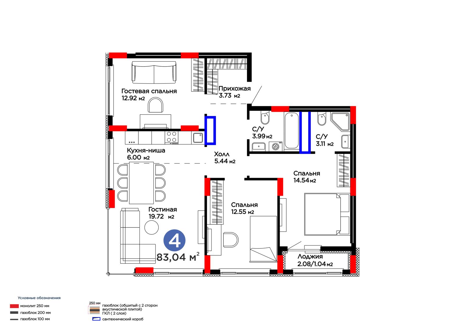 4-комн., 83.9 м², 7 этаж из 9 г. Астана, ул. Улы дала ЖК ŪIA.BIRLIK