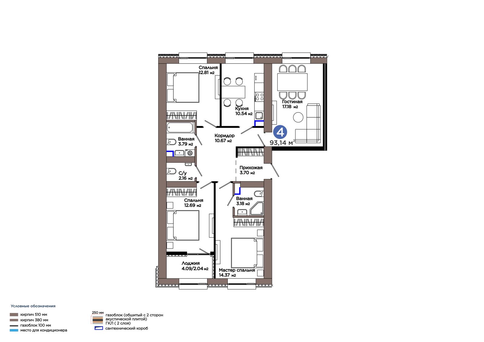 4-комн., 121.22 м², 10 этаж из 17 г. Астана, ул. Улы дала ЖК ŪIA.BIRLIK