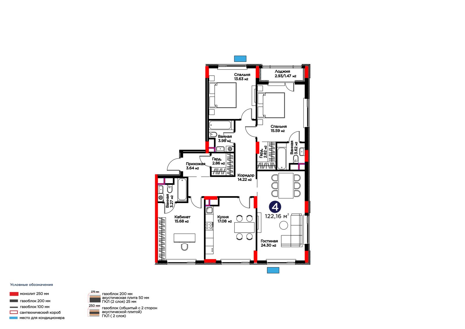 4-комн., 122.16 м², 4 этаж из 9 г. Астана, ЖК Lavita