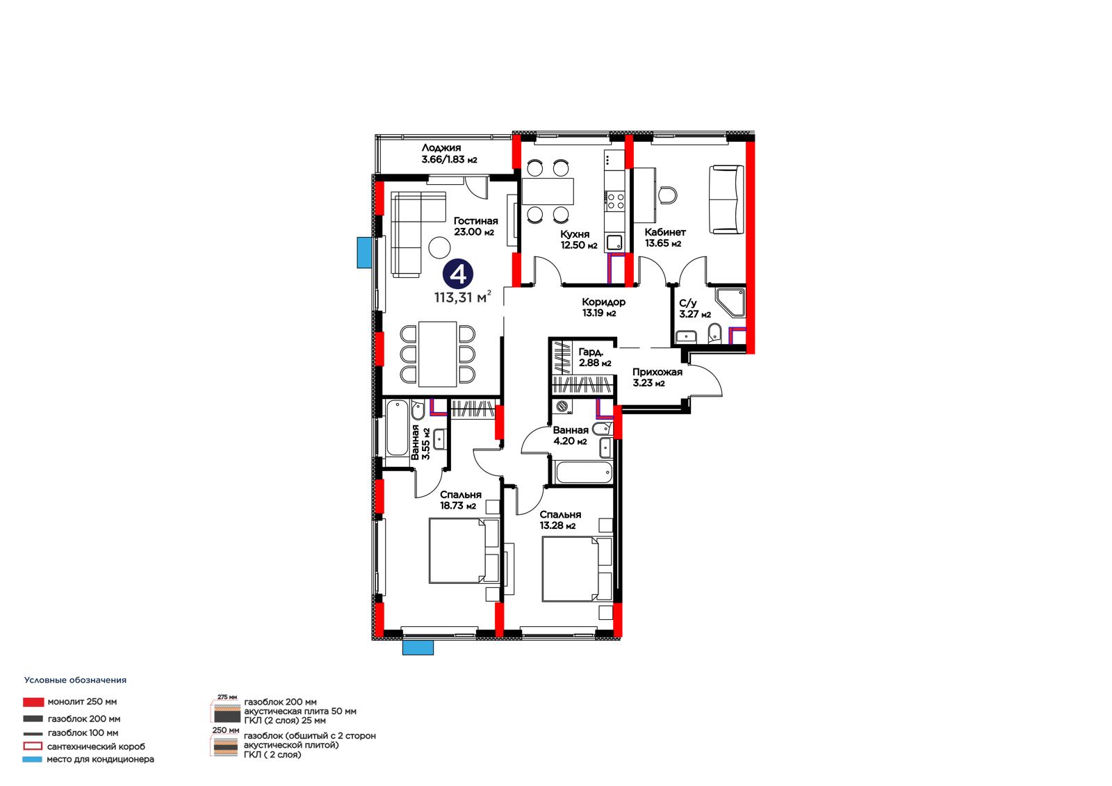 4-комн., 113.31 м², 4 этаж из 9 г. Астана, ЖК Lavita