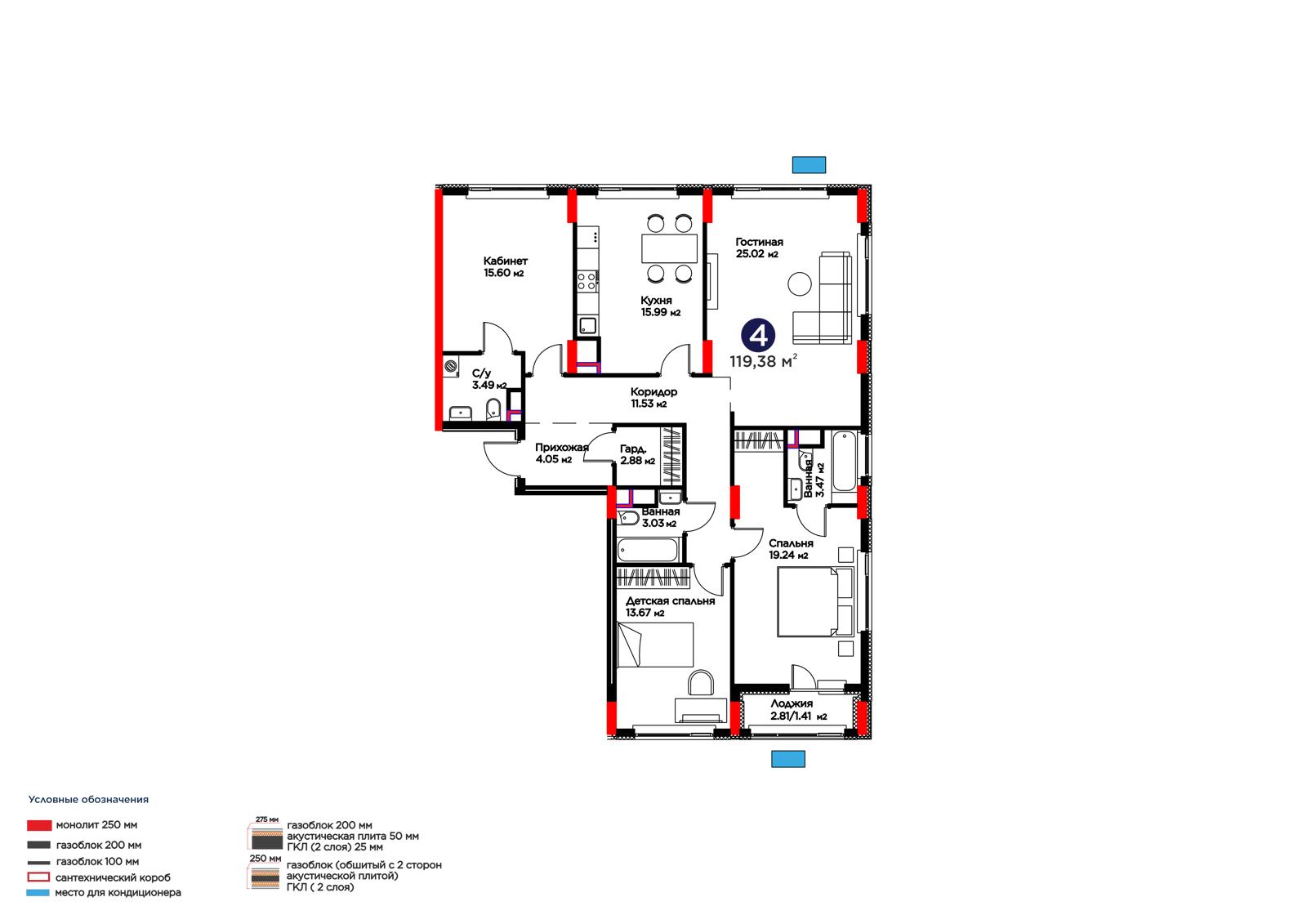 4-комн., 119.38 м², 7 этаж из 9 г. Астана, ЖК Lavita