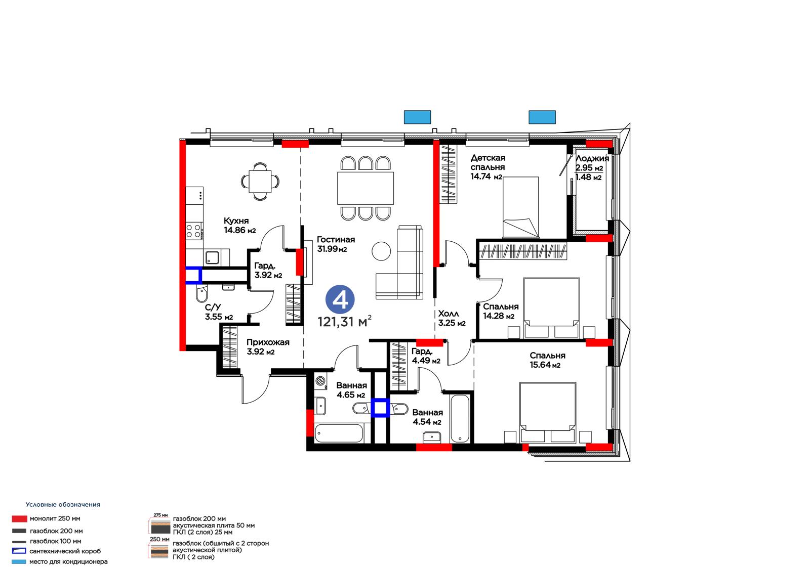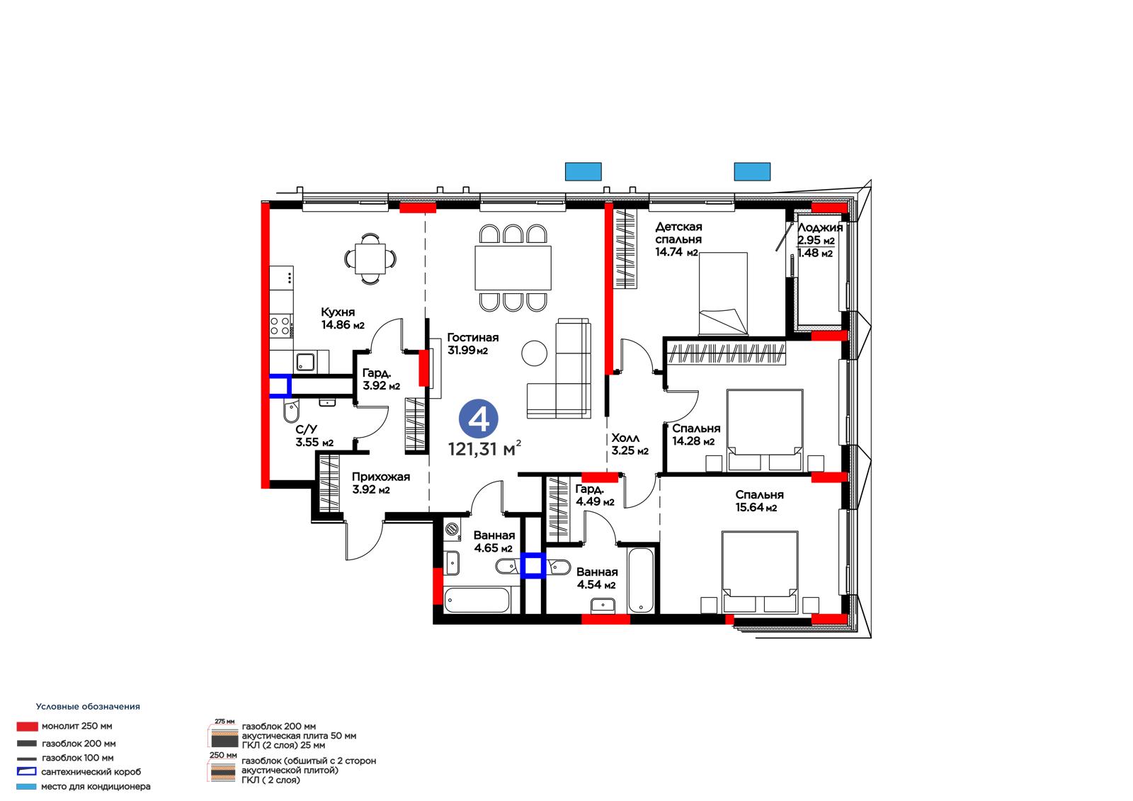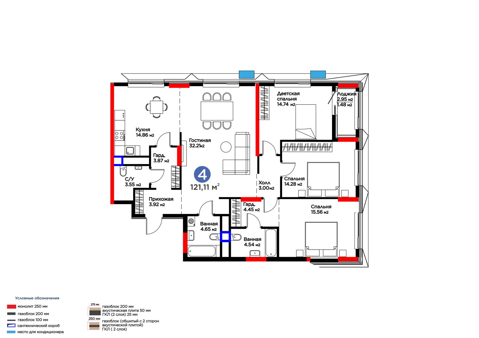 4-комн., 121.32 м², 2 этаж из 17 г. Астана, ул. Хусейн бен Талал (31-я) ЖК MOD Ultra