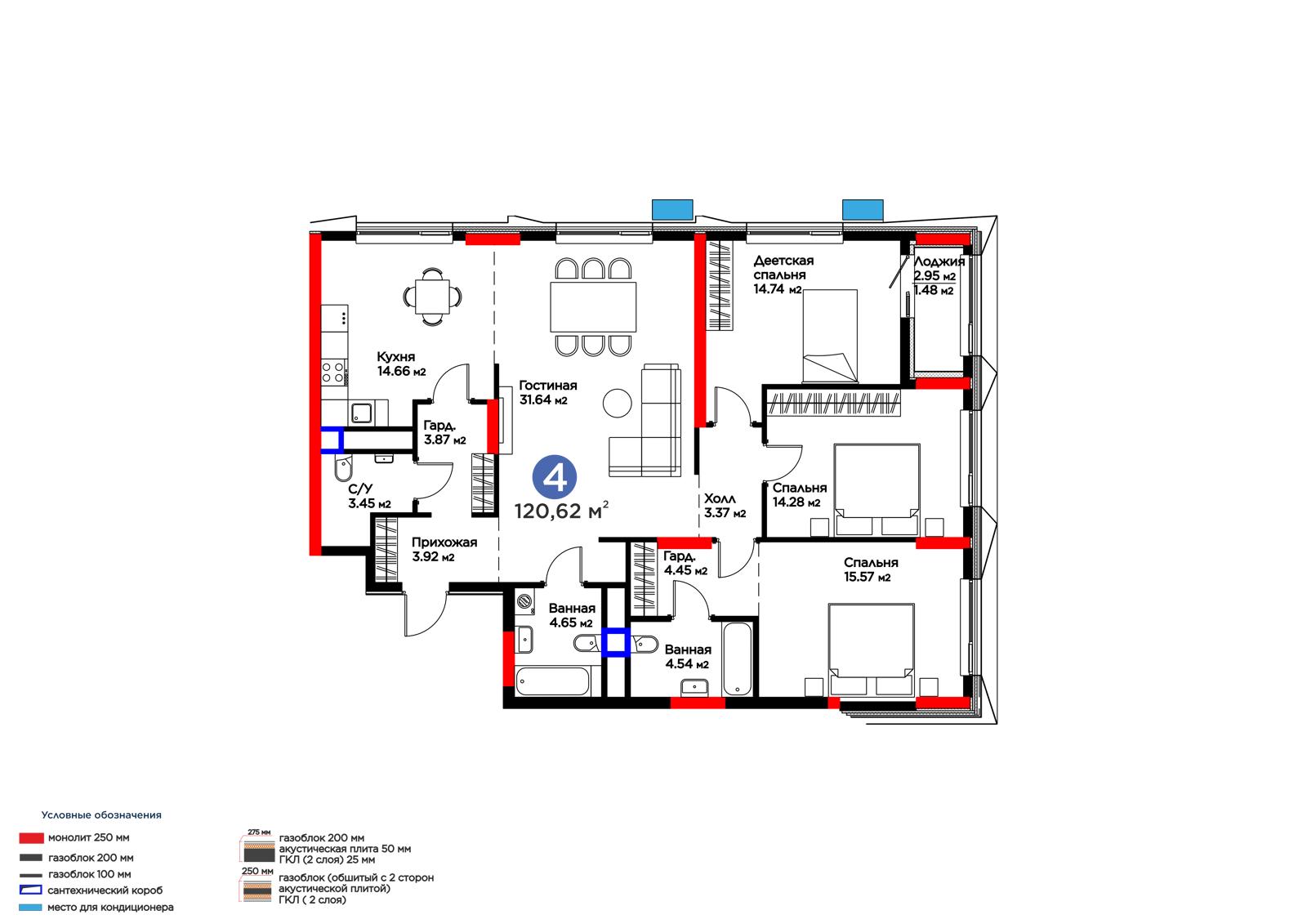 4-комн., 120.62 м², 4 этаж из 17 г. Астана, ул. Хусейн бен Талал (31-я) ЖК MOD Ultra