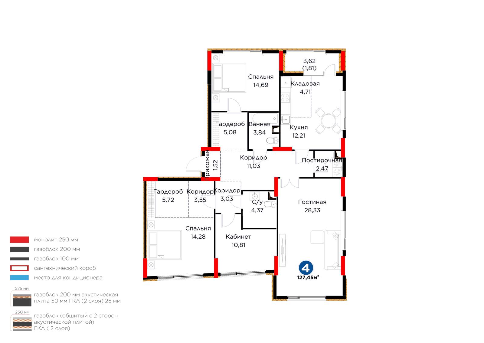 4-комн., 131.63 м², 3 этаж из 9 г. Астана, ул. Хусейн бен Талал (31-я) ЖК MOD Ultra