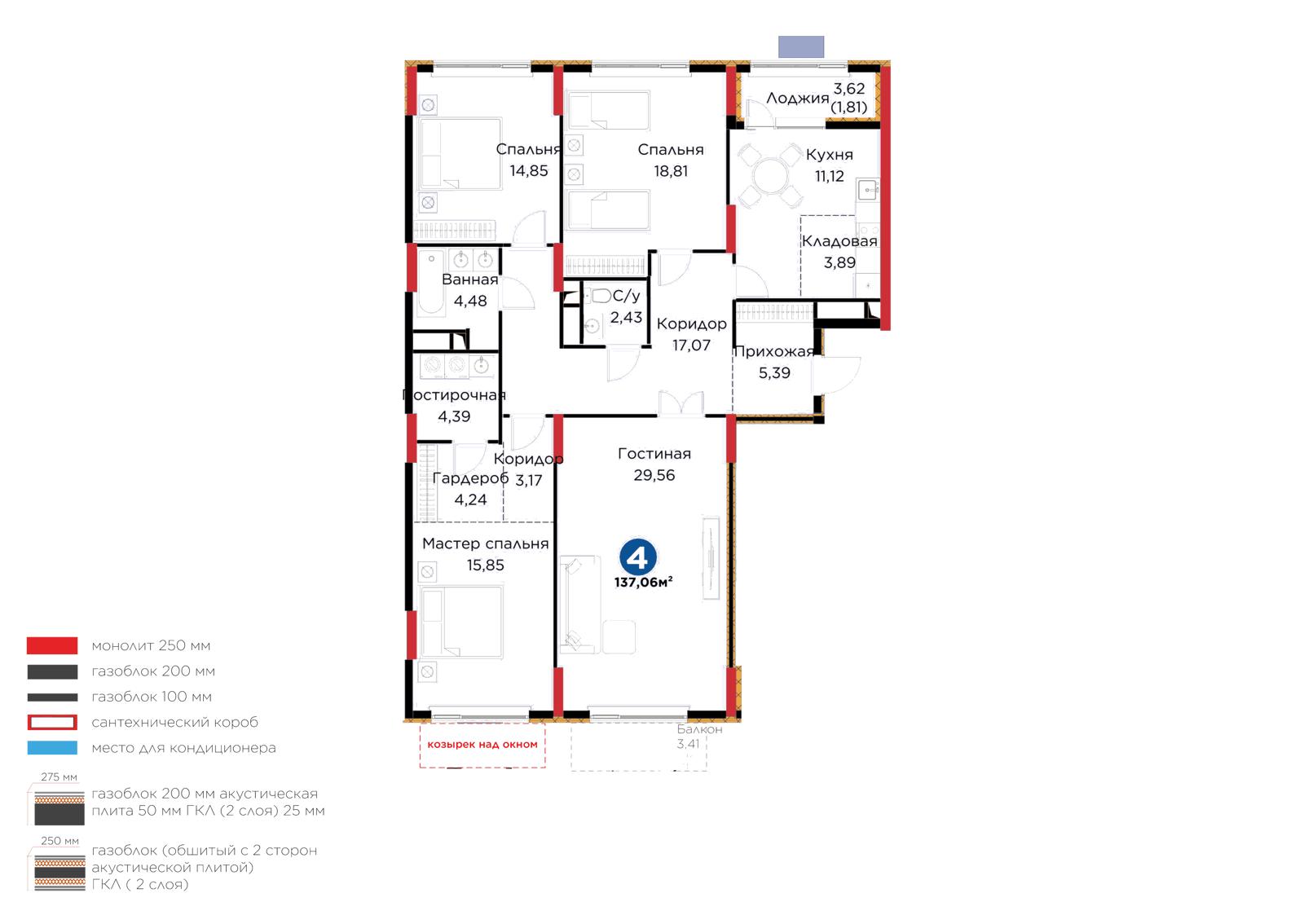 4-комн., 121.31 м², 17 этаж из 17 г. Астана, ул. Хусейн бен Талал (31-я) ЖК MOD Ultra